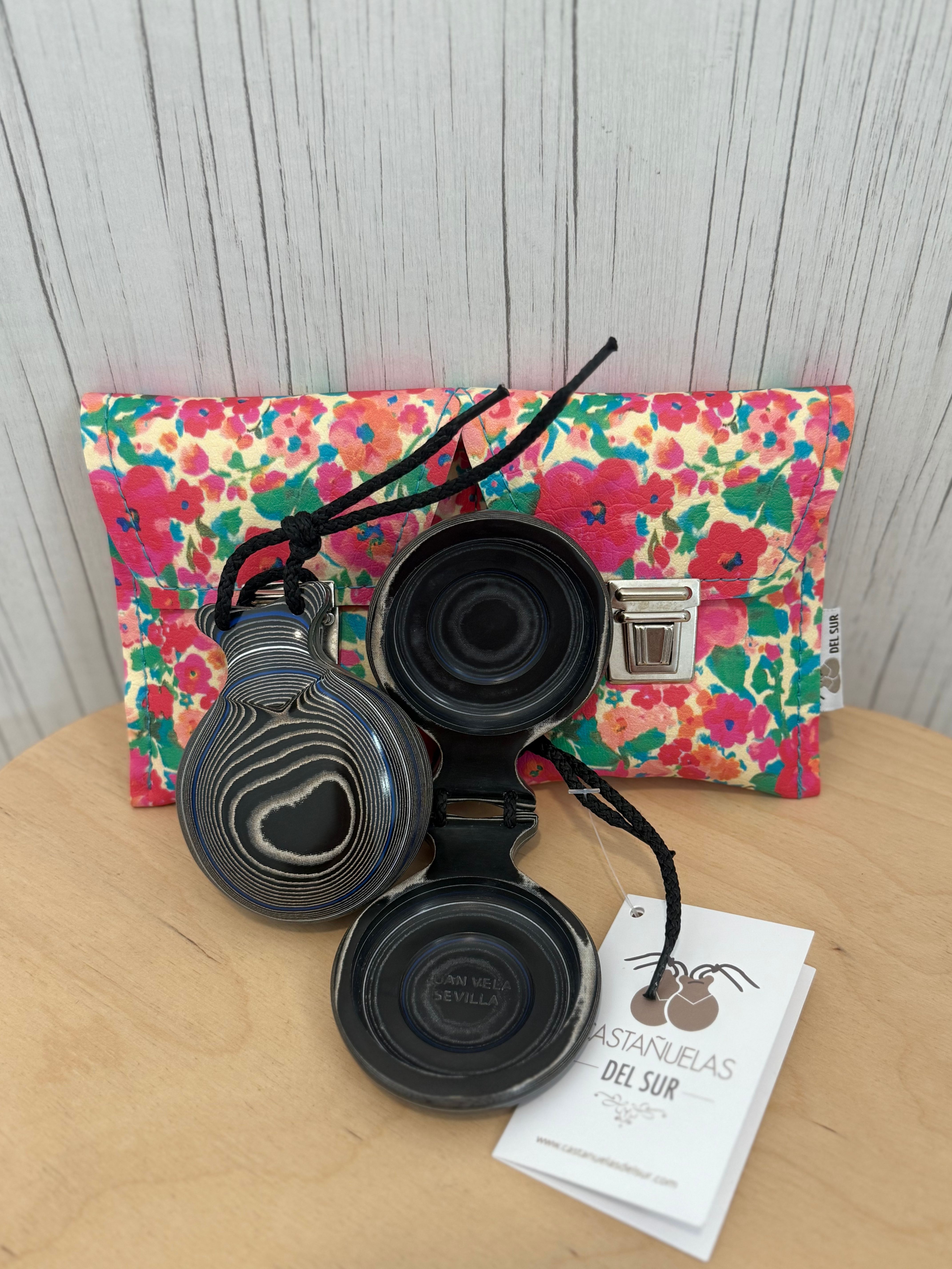 Las castañuelas capricho de tela pertenecen a la gama más alta de castañuelas, con una composición formada de algodón (tejido) y resinas de alta calidad. Este material nos ofrece el sonido más grave de todos. Es un modelo ideal para estudios de grabación, espacios reducidos y solistas, ya que emita ondas cortas de vibración. Este modelo viene con la funda hecha a mano de polipiel y borreguito con cierres metálicos.